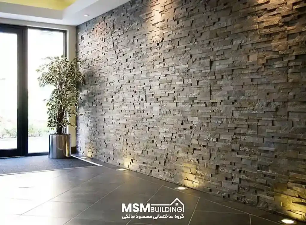 سنگهای طبیعی و مصنوعی یکی از گزینههای لوکس برای پوشش دیوارهای داخلی ساختمان در گیلان هستند. این متریالها علاوه بر مقاومت بالا، زیبایی چشمگیری دارند.