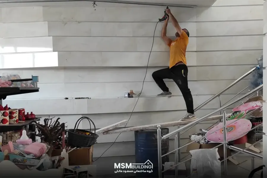 هر بخش از پروژه توسط گروهی متخصص انجام شد؛ از کنافکاری گرفته تا رنگآمیزی، طراحی چوبی و نصب کفپوش.